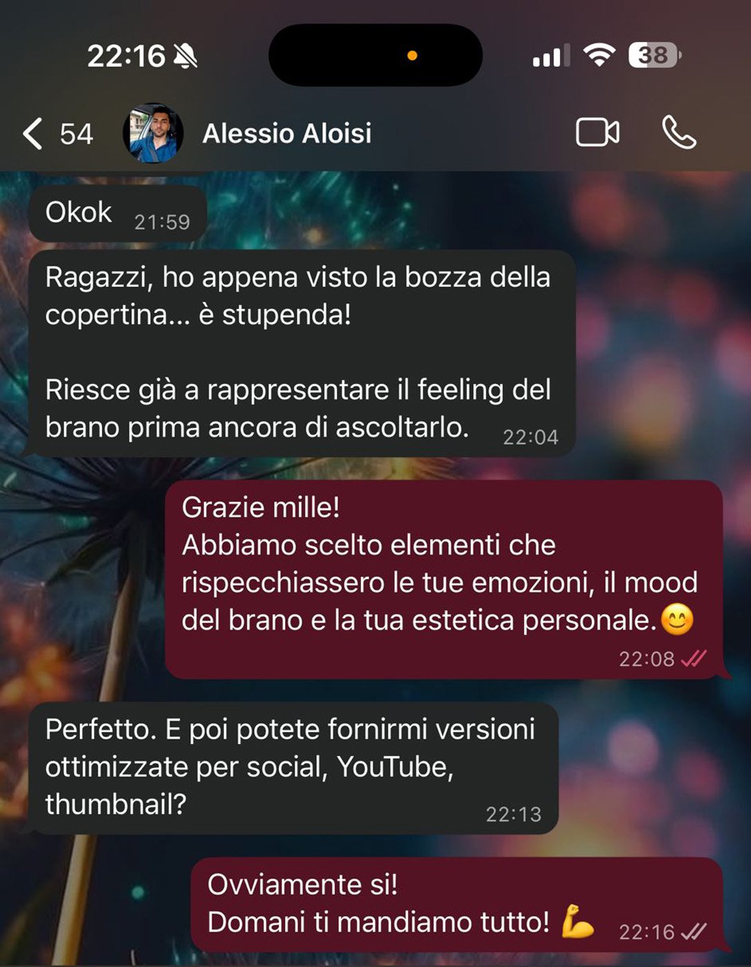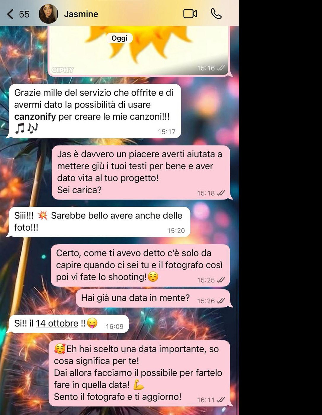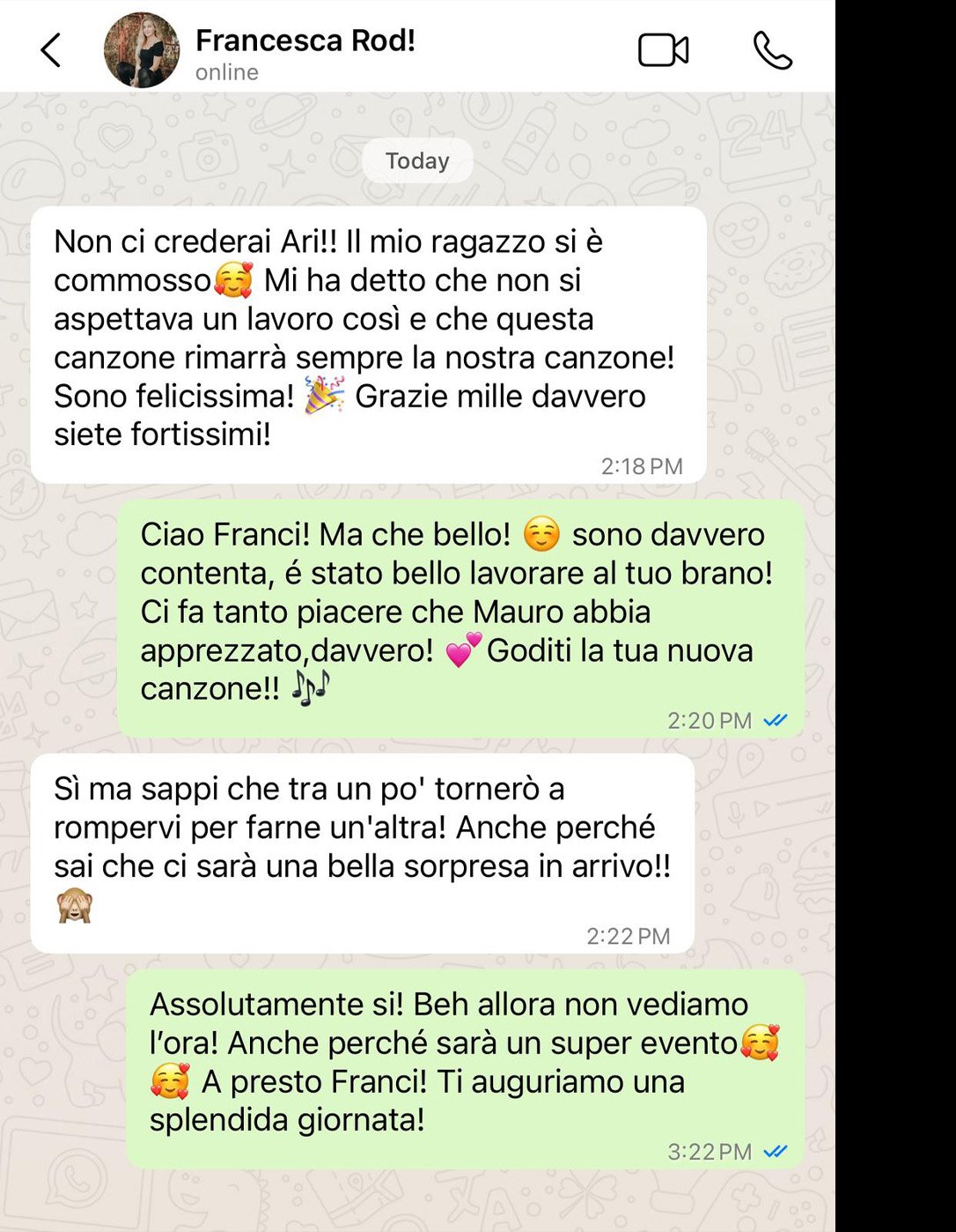 “Non ci crederai Ari!! Il mio ragazzo si è commosso 🥰 Mi ha detto che non si aspettava un lavoro così e che questa canzone rimarrà sempre la nostra canzone! 🎉 Sono felicissima! Grazie mille davvero siete fortissimi!”