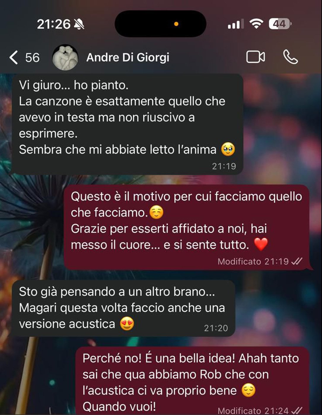 "Vi giuro... ho pianto. La canzone è esattamente quello che avevo in testa ma non riuscivo a esprimere. Sembra che mi abbiate letto l'anima 🥺 "
