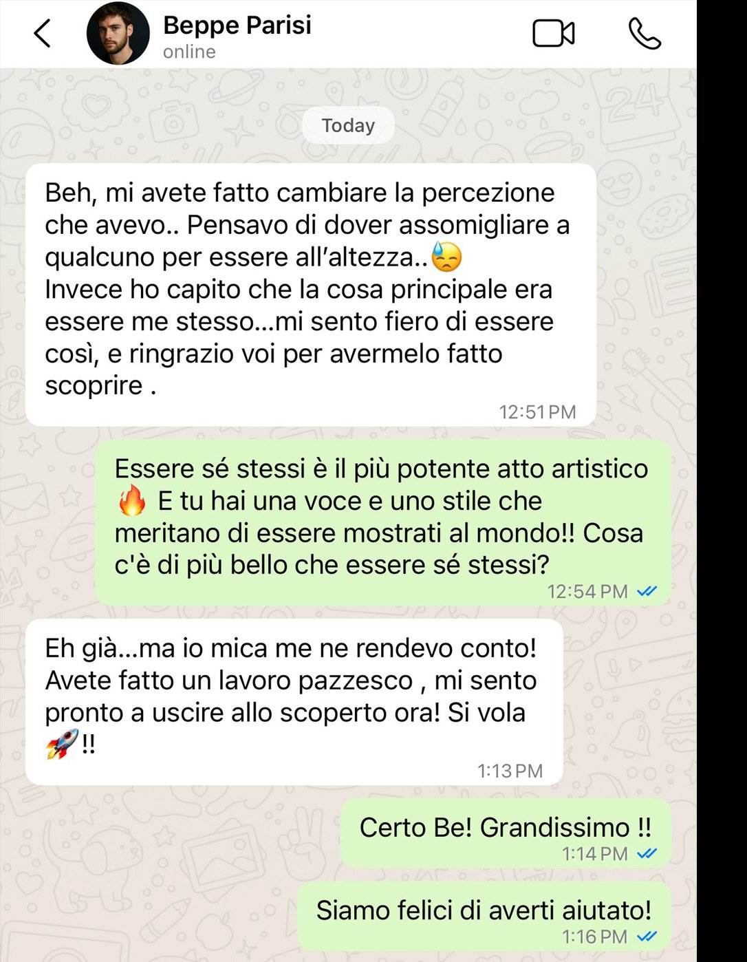 “Mi avete fatto cambiare completamente il modo di pensare al mio progetto musicale. Ora so cosa voglio comunicare e come farlo.”