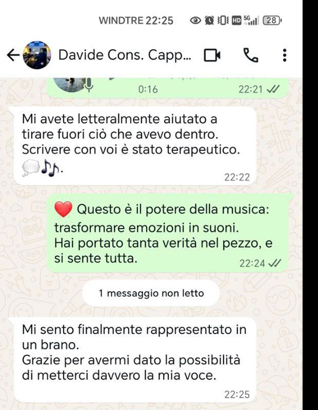 “Mi avete letteralmente aiutato a tirare fuori ciò che avevo dentro. Scrivere con voi è stato terapeutico. 💭🎶”