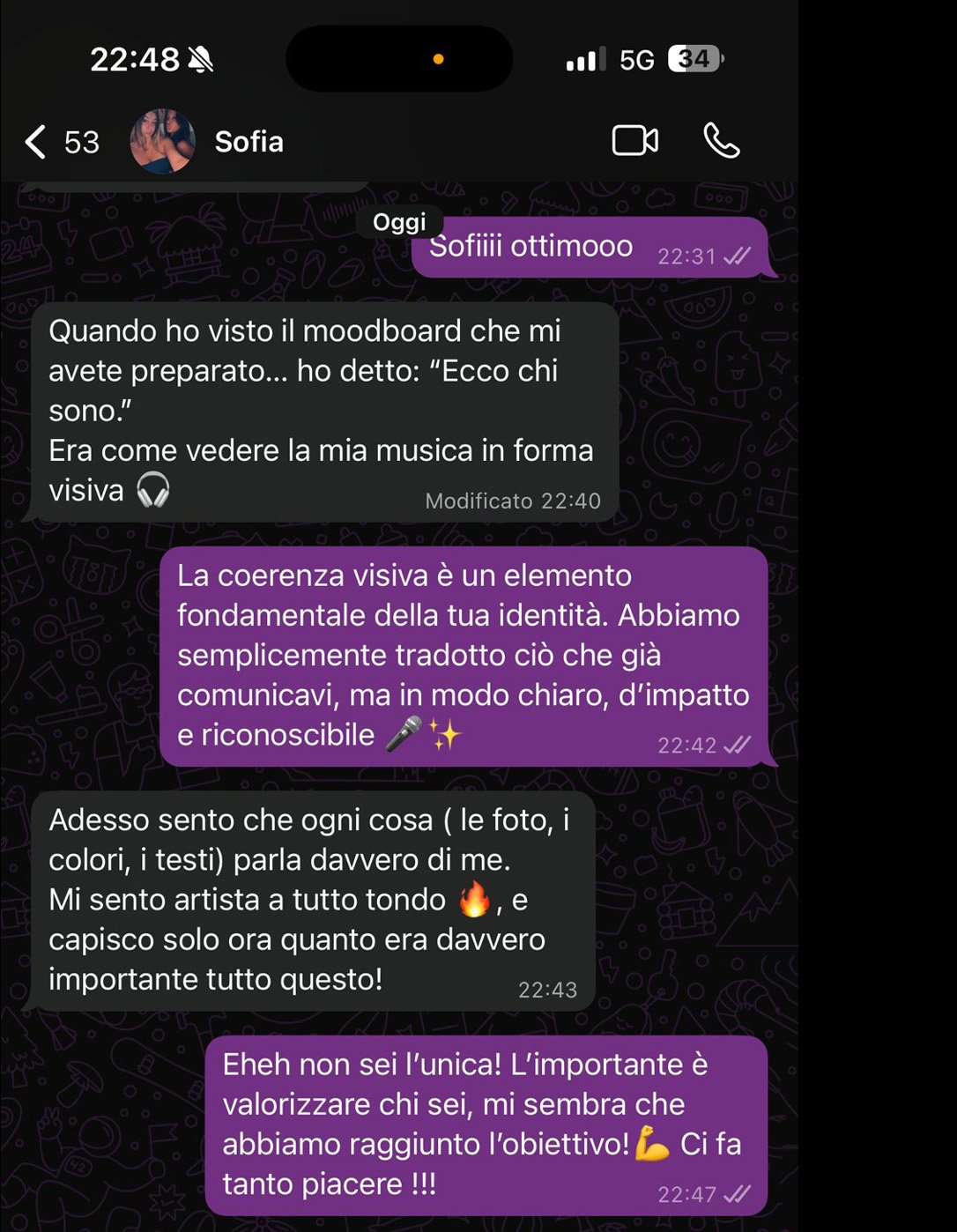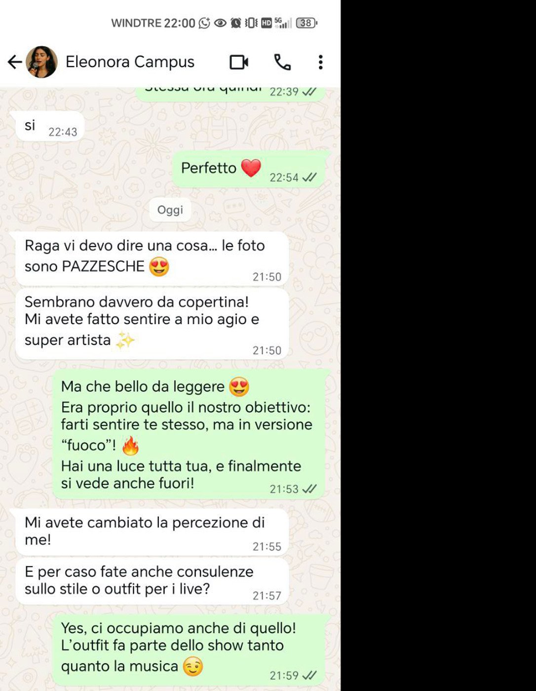 “Raga vi devo dire una cosa… le foto sono PAZZESCHE 🥰 Sembrano davvero da copertina! Mi avete fatto sentire a mio agio e super artista ✨”