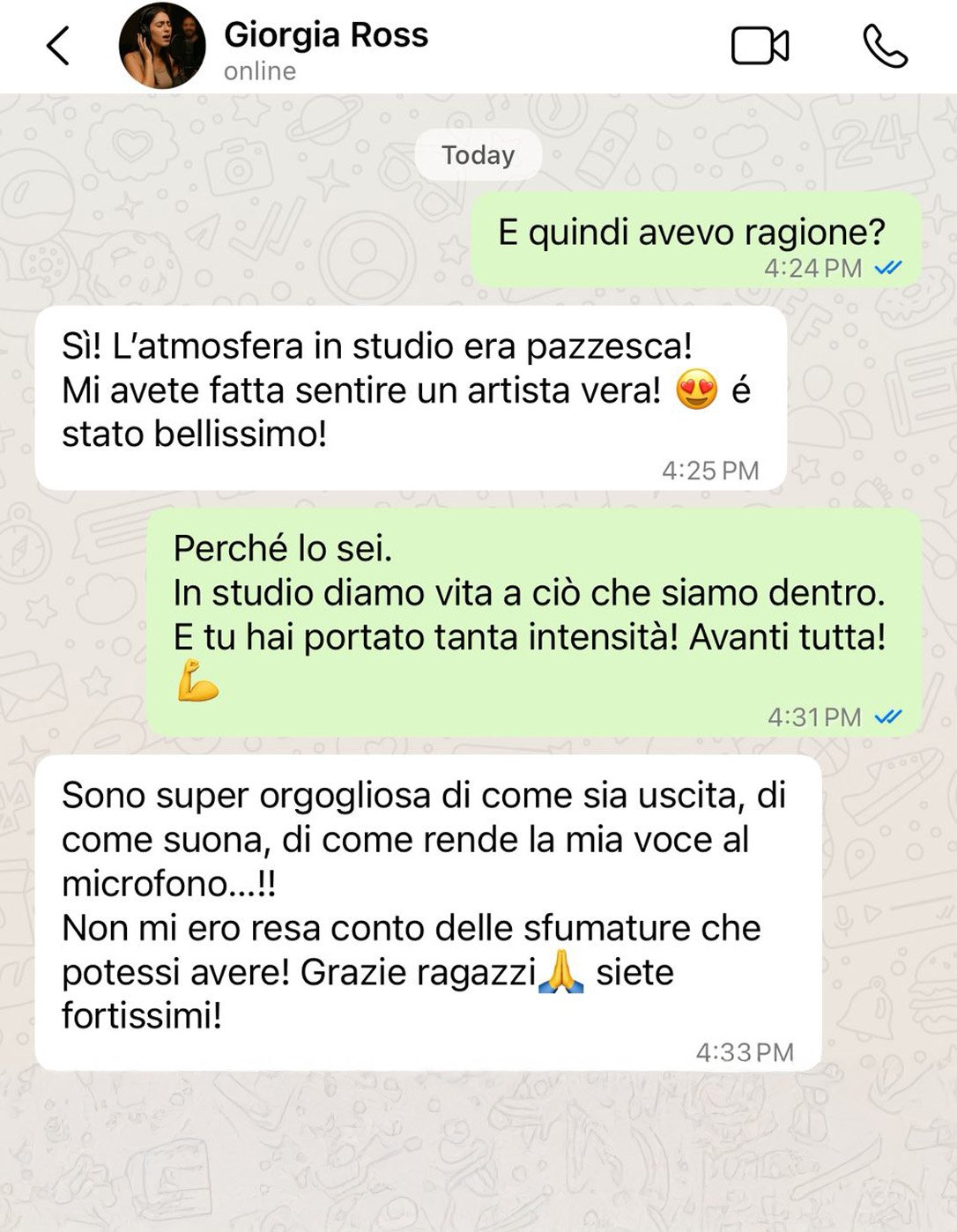 “Sono super orgogliosa di come sia uscita, di come suona, di come rende la mia voce al microfono…!! Non mi ero resa conto delle sfumature che potessi avere! Grazie ragazzi 🙏 siete fortissimi!”